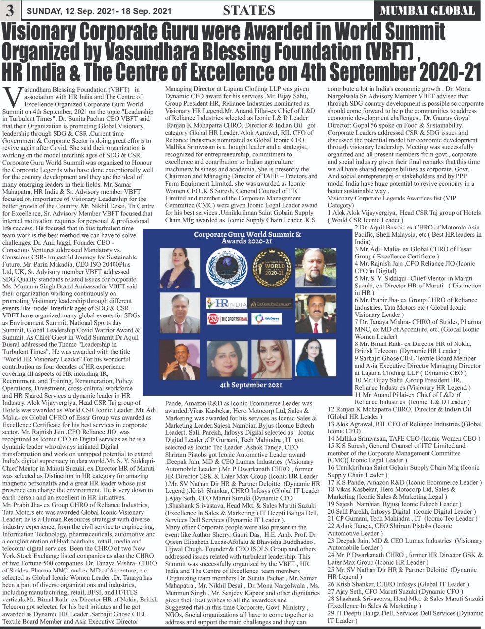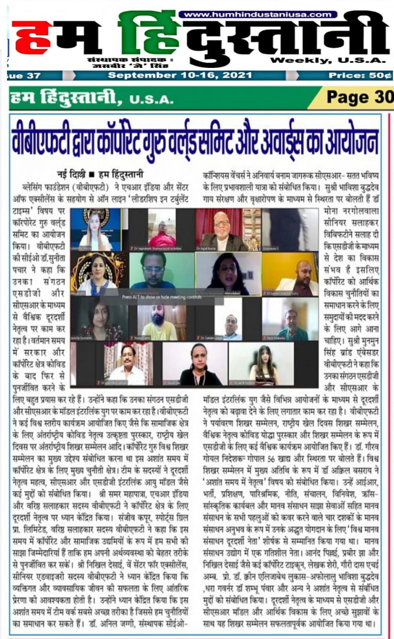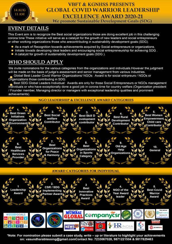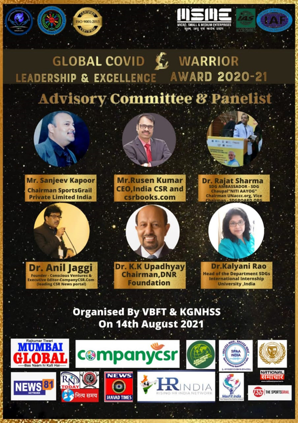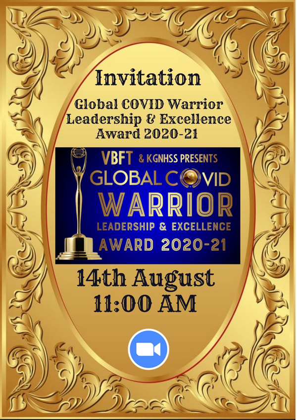 ग्लोबल कोविड़ वॉरियर लीडरशिप एंड एक्सीलेंस अवार्ड के द्वारा रियल हीरोज को किया जाएगा सम्मानित